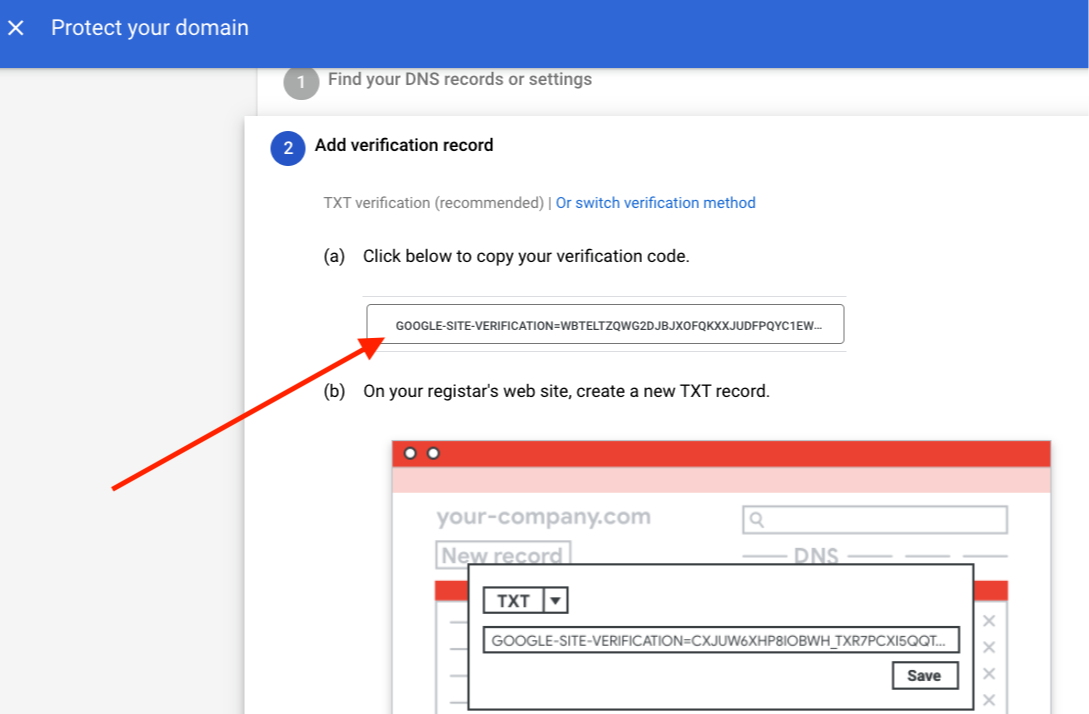 I will need to add some codes to the domain name records to complete the process, but once I have that verification code, I’ll take care of it.