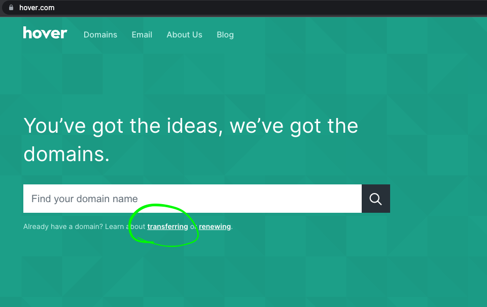 Also, there’s a transfer code you’ll need which is provided from the current registrar upon request. Some registrars make you wait for this code, but in our example, we are going to use Hover.com. But the concept is the same at every registrar.
